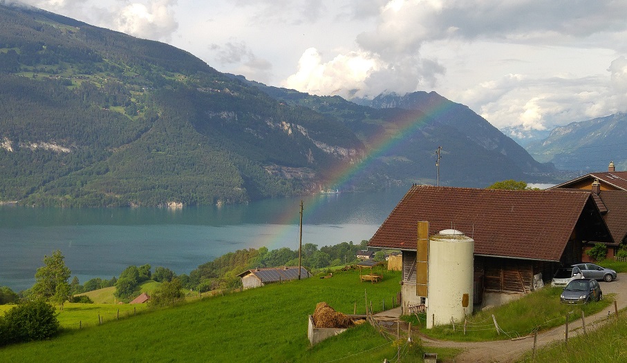 Sain myös tehdä kokeen. Sitä ei vielä muutama vuosi sitten ollut; tytär ja mies pääsivät pälkähästä. Tytär ei muutenkaan ilmeisesti täällä koulunsa käyneenä olisi joutunut tentattavaksi. Minä opettelin valtion, kantonin ja kunnan asiat maantiedosta historiaan, oikeuslaitosta, uskontoa ja sosiaaliturvaa unohtamatta. Nytpä tiedän, että kylän nimi oli alunperin Collinchovin eli Zollon piha. Zollo oli alemaaneja, joiden heimot asustelivat näillä main 600-700 luvuilla. Roomalaiset ovat tiputelleet seudulle omana aikanaan kolikoita ja kelttien hautoja on lenkkipolun varressa. Siinä on vähän näkökulmaa menneisyyteen. Nyt täällä hilpottelee yksi kotkalainen. Upea jatkumo.