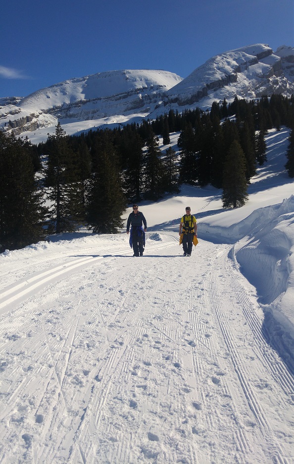 Tämä oli toipumislenkki, hyvinvoinnilla voitelua, aurinkoa ja parantavaa Alppien ilmaa. Niin vakuutin. Joukkue oli vähän toista mieltä, kun yskä sakkasi ja nousua riitti. Yritin pysähtyä kuvaamaan usein, katsoin omaa pulssiani ja totesin, että kyllä tämä tästä. Jos minä, niin hänkin. Ei ehkä ollut ihan paras päätelmä. Toipilas ei kyllä valittanut, mitä nyt hikoili ja jäi vähän jälkeen.