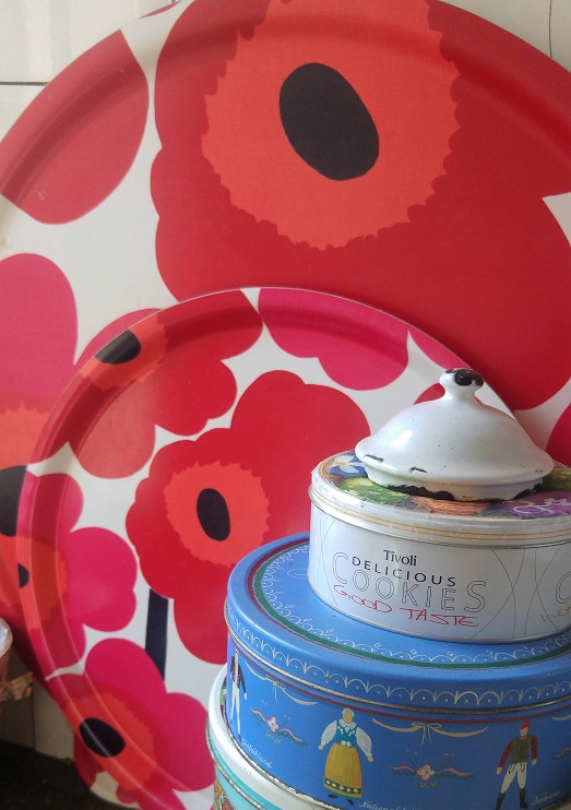 Sisällä joudun hommiin. Olen kuulemma luvannut fonduen hämmentäjäksi. Kuumottava paikka; en ole koskaan tehnyt fonduetä sveitsiläisille. Pärjään kuitenkin hyvin, en polta massaa pohjaan. Joka puolella taloa on marimekkoa. Keittiössä peltipurkeissa koiran snäkkejä, naulakoissa roikkuu kuppeja, patahanska, tarjottimet; kaikki samaa. Mainitsen siitä isännälle ja hän esittelee myös mustaruskearaitaiset marisukkansa.
