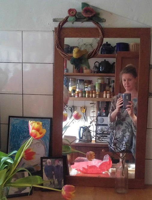 Hyvä tarina keväästä. .Viulumaakari virkeänä ystävien keskellä.Mainio tuo peilikuva.Taiteellinen.Iskä