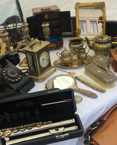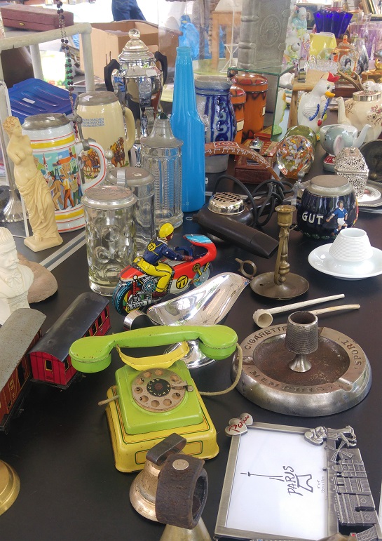 Lauantaisin laiturin lähelle Bürkliplatzille levittäytyvät kirpputorimyyjät. Ehkä kylmä ja sade oli saanut osan pysymään kotona, myös asiakkaat. Mutta täältä saisi kiloja painavia lehmänkelloja, jykeviä puisia huonekaluja, soittimia ilman kieliä, racletteuunin, koruja, vanhoja kahvikuppeja ja tauluja.
