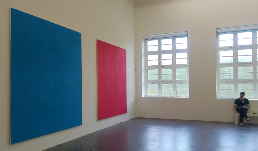 Zürichissä on monta kymmentä taidetta esittelevää museota ja galleriaa, ties mitä tilaa. Haus Konstruktiv on yksi hämmentävimmistä. Kassan takana on ovi, joka näyttää hyvin yksityiseltä tai ainakin todella suljetulta. Sieltä mennään ensimmäiseen näyttelytilaan. Valoa, valtavia ruutuja, punaista, sinistä, lilaa. Arizonassa asuva Olivier Mosset on kuulemma yksi tärkeimmistä elävistä sveitsiläisistä taiteilijoista.