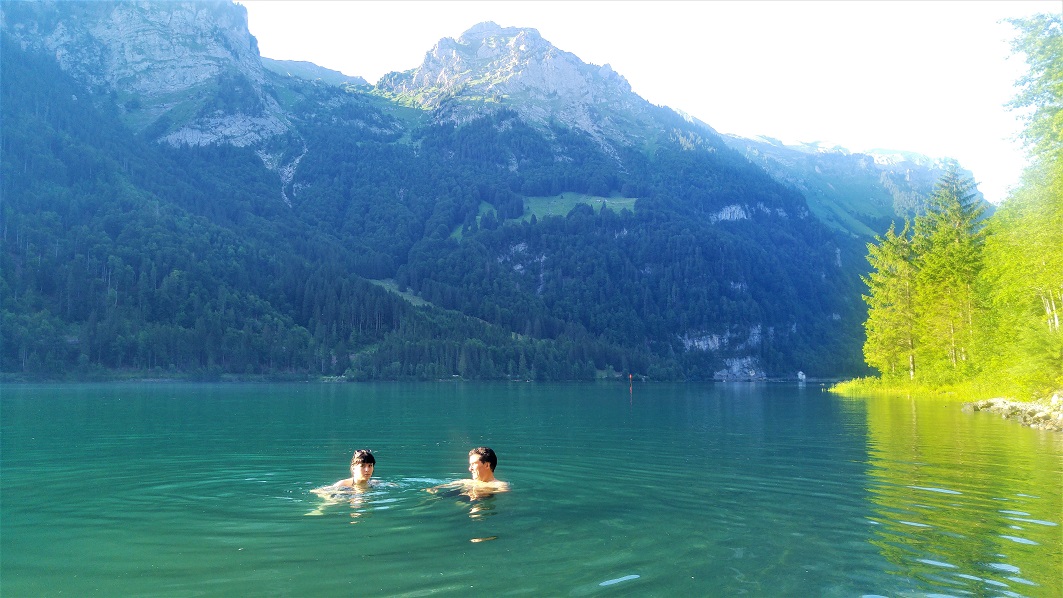 KlöntalerseeJos katsot tarkkaan, näet kaloja./If you look carefully, you might find fishes. Polulta löytyi totuus./We found the truth on the path.