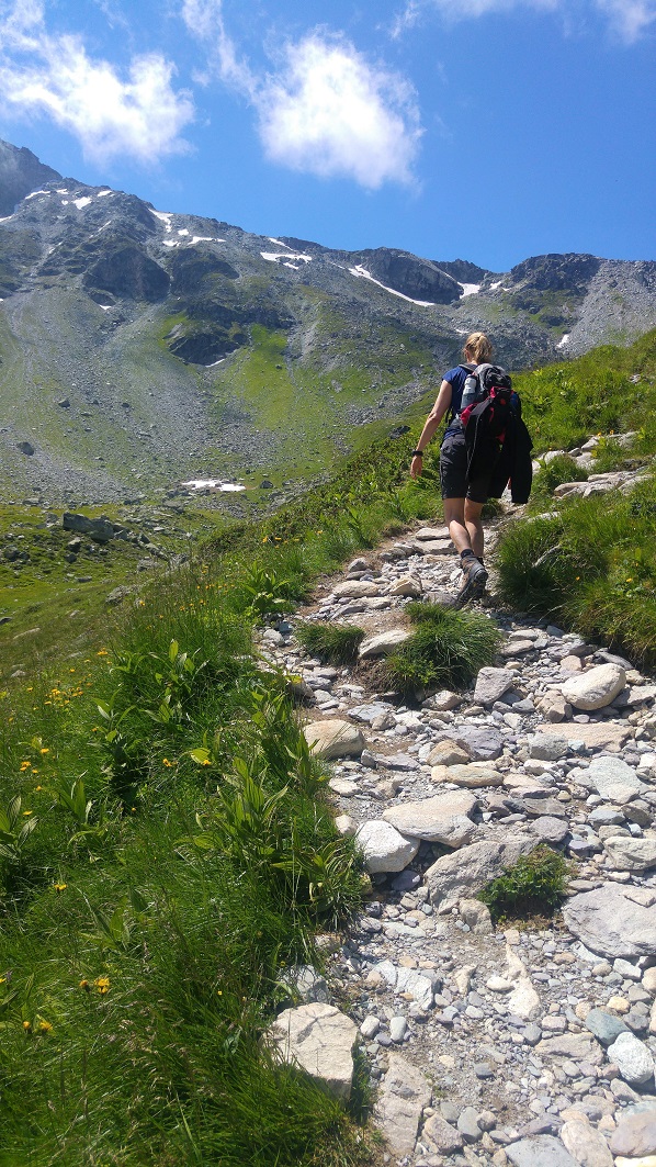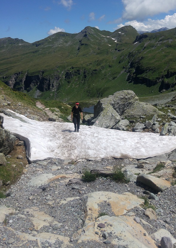 Kurzgesagt: Nach der Pause hatten wir einige Überraschungen auf dem Weg. Unangenehme: Erdrutsch. Nicht so schlimme: mehrere Orte mit Schnee. Positive: viele Blaubeeren. Zum Schnluss sind wir 699 m aufgestiegen, 726 m abgestiegen, 4 Std und circa 12 km gelaufen und der höchste Punkt war 2299 m.