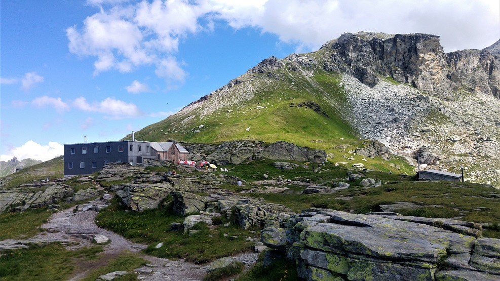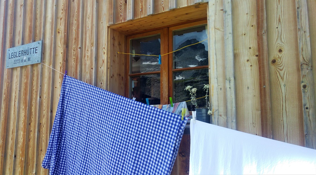 Leglerhüttellä istahdettiin hetki lepuuttamaan koipia ja ihailemaan maisemia. Oli pakko saada lisää juotavaa ja jaettiin pala sitruunakakkua. Majalla on majoitusmahdollisuudet ja alkoi hiukkasen kaduttaa, ettei ollut tehty varausta. Neljän hengen huone kerrossänkyineen näytti kutsuvalta Seuraavan aamun sää olisi kuitenkin sateinen, enkä halunnut jatkaa matkaa pilven sisällä. Illallisesta ja yöpymisestä veloitetaan n. 80 frangia per nenä.
