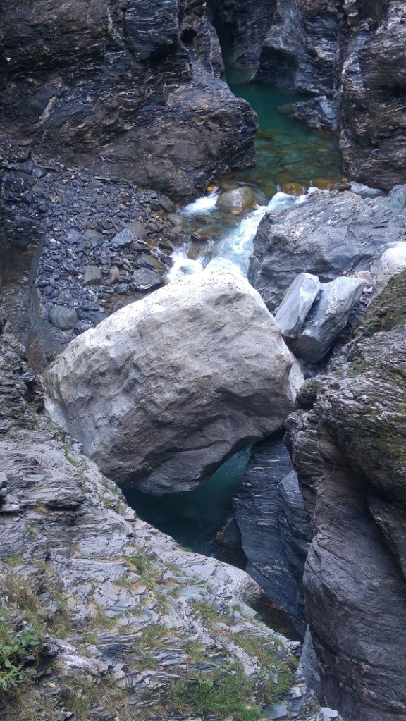 En resumen: Thusis-Veia Traversina-Viamala es una ruta, donde no vuelvo. Al cañon – ok, pero en carro al parqueo al frente. Tuve que colgarme de las hierbas y hongos para no caerme por el guindo. El camino no era tan angosto, pero faltaba confianza en las botas y un pequeño error en el movimiento hubiera sido fatal. – O sea, nunca más.