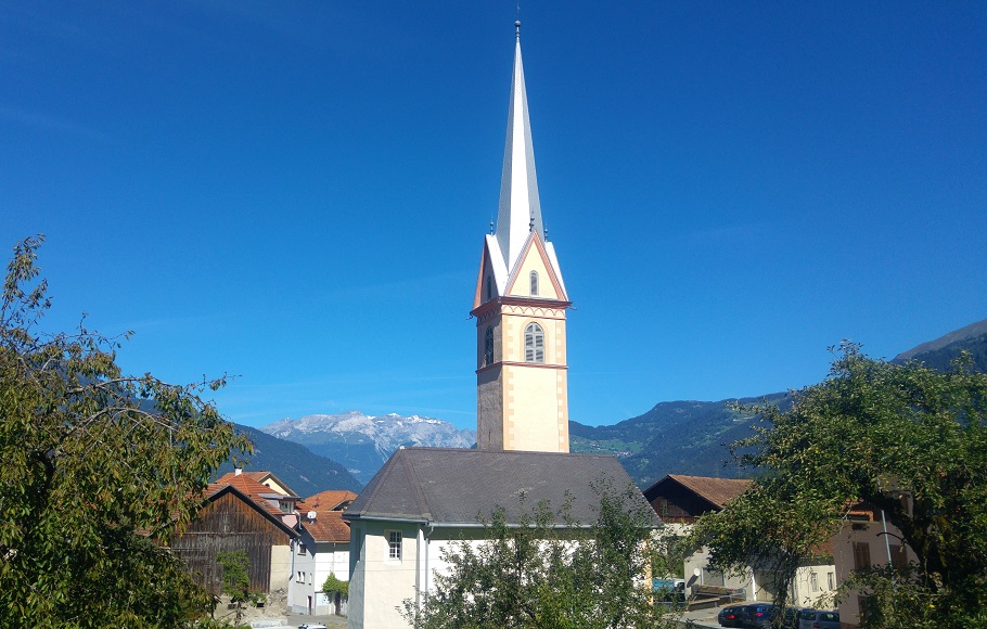 Laaksossa lähtöpiste, Thusis. /Down in the valley Thusis, where we came from.
