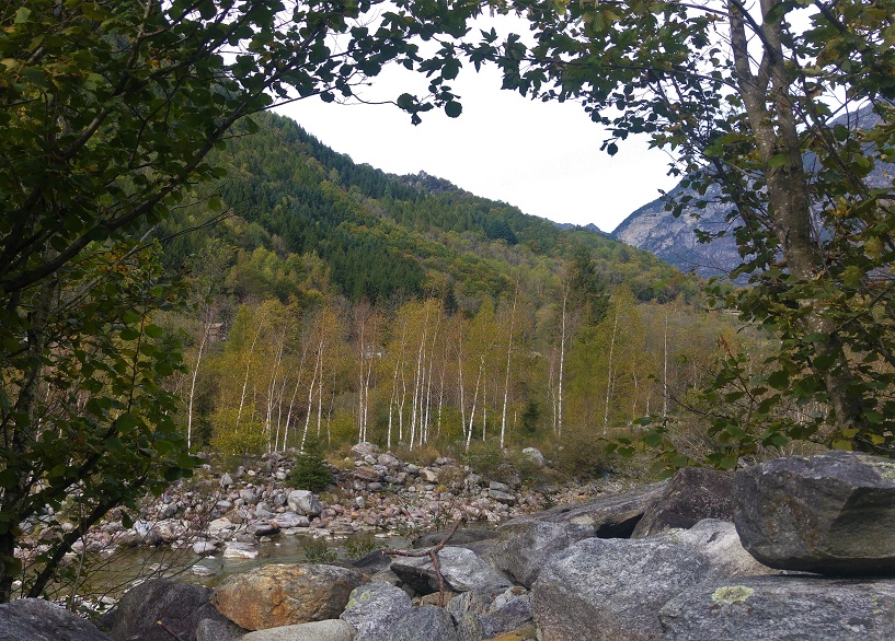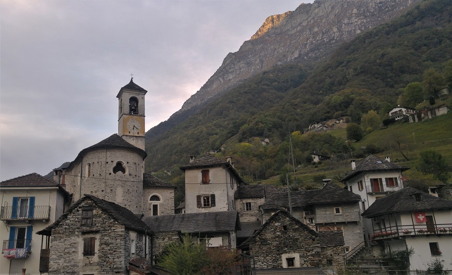 Pilvet lipuvat auringon eteen ja tulee viileä. Emme sittenkään jää odottelemaan auringonlaskua, vaan puksuttelemme junalla laaksoon. Wilderswilin kylässä haluan vielä katsoa vanhojen talojen välistä kohoavaa kirkkoa ja löydämme puisen katetun sillan, joka luo täydelliset raamit syksyn väreille.