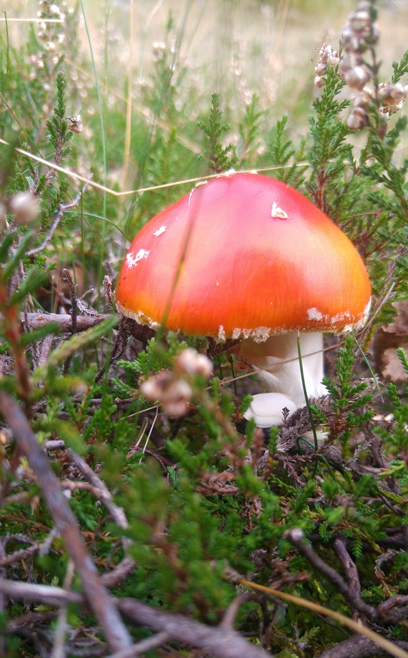 Kun patikoimme eteenpäin, kivikentän rotkon puolelta ilmestyy pojan pää. Isä tulee perässä. Kuka sitä tavallista polkua viitsisi mennä, kun jyrkännekin tarjolla. He ovat tulleet alkumatkan kattilan keskellä kulkevaa reittiä ja kenties käyneet makkaranpaistossa sienten keskellä. Nopealla vilkaisulla näen vain kiviä, mutta hei, niistähän tulee ulos lapsia. Leikkikentällä on lapsen kokoisia jättisieniä ja luonnonkiviä, sekä nuotiopaikka.