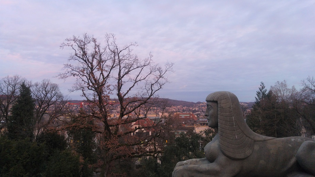 Olin sopinut treffit keskusasemalle ja jäin yhtä asemaa ennen pois junasta, vain katsoakseni, onko kaupungissa sävyjä. Saattoihan olla, etten enää nähnyt kaupungin kauneutta muulloin kuin ideaalisäällä. Mutta onhan se niin, että aurinko luo tietyn mielentilan ja esittelee parhaat puolet näkymästä. Hämäryydessä ja harmaudessa on kuitenkin omat puolensa ja Zürich lopulta viehättävä kaikissa valoissa.