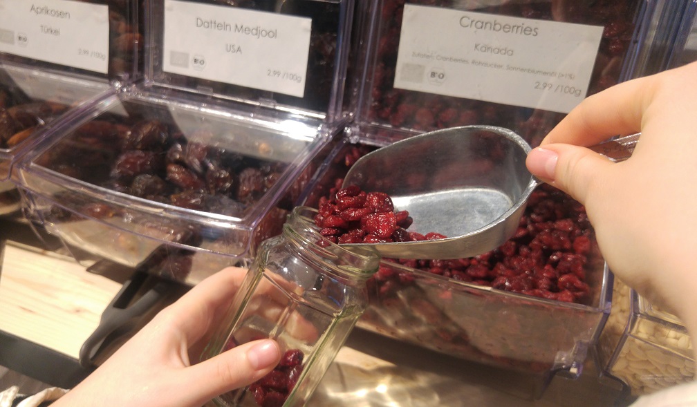 Lähikauppaketjun liikkeet Genevessä ovat kokeilemassa muistaakseni kuivapapujen ja riisin myyntiä ilman pakkausta – toivoakseni kokeilu laajenee käsittämään muita tuotteita ja tulee myös pian Zürichiin ja meidän kylälle.