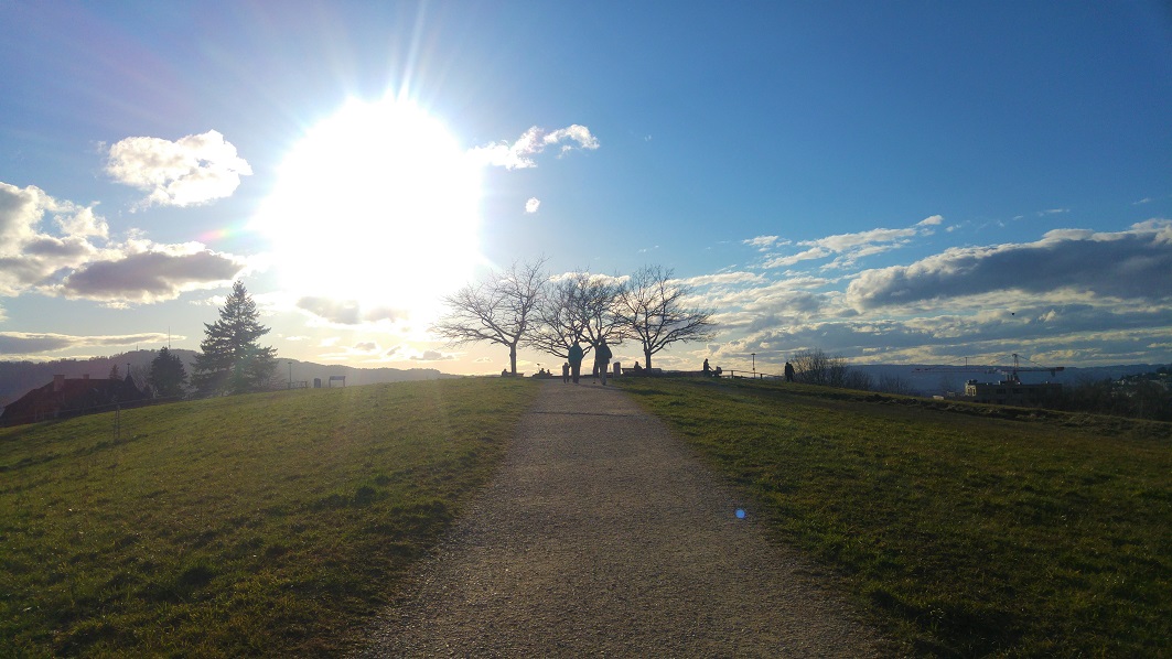 Zürichistä tänne ajaa reilussa tunnissa, julkisilla kestää tuplasti. Läheisyys ja kaikenpuolinen mukavuus on plussaa. Helppo paikka tulla nopeasti piipahtamaan auringossa ja talvessa. Talvipatikkareitti on päiväretkelle lyhyehkö, mutta sopii nautiskelijoille, heikkokuntoisille ja lapsiperheille. Pulkka- ja kelkkaväkeä olikin liikkeellä aikalailla. Matkaa kertyi vajaa kymmenen kilometriä, nousua 245 m ja laskua 175 m.