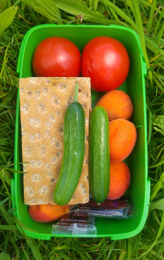 Pyöräilysortsit jalassa, aurinorasvaa läiskitty. Pyörin keittiössä ees taas. Pysähdyn hetkeksi. No ne samat. Hedelmää ja vihanneksia virkistykseksi, pähkinöitä proteiiniksi, jotain leipää hiilihydraatiksi ja väliin taas proteiinia. Lisäksi herkkua ja vettä. Menojalkaa kutkuttaa, pitäisi päästä lähtemään. En jaksa miettiä sen enempää ja lataan tarvittavat laatikkoon, tarakalle – hep.