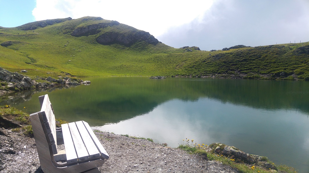 En resumen: Los lagos en los Alpes tienen unos colores impresionantes. En la vuelta de cinco lagos en Pizol mi favorito era el segundo, Wildsee en 2495 metros. Bordes y picos filudos, imposible de acercar, pero vea el color! Pero en el próximo, en el lago de Schotten, me sentía mejor. El lago invita a quedarse un rato, a contemplar en lo verde. Y descansar un rato las piernas cansadas.