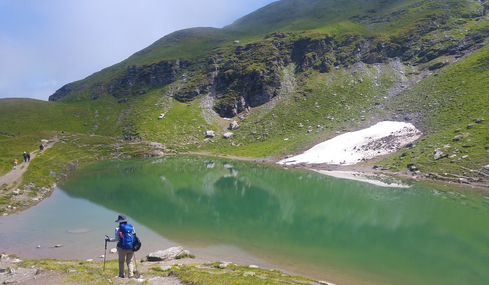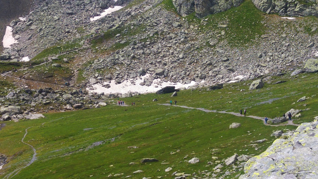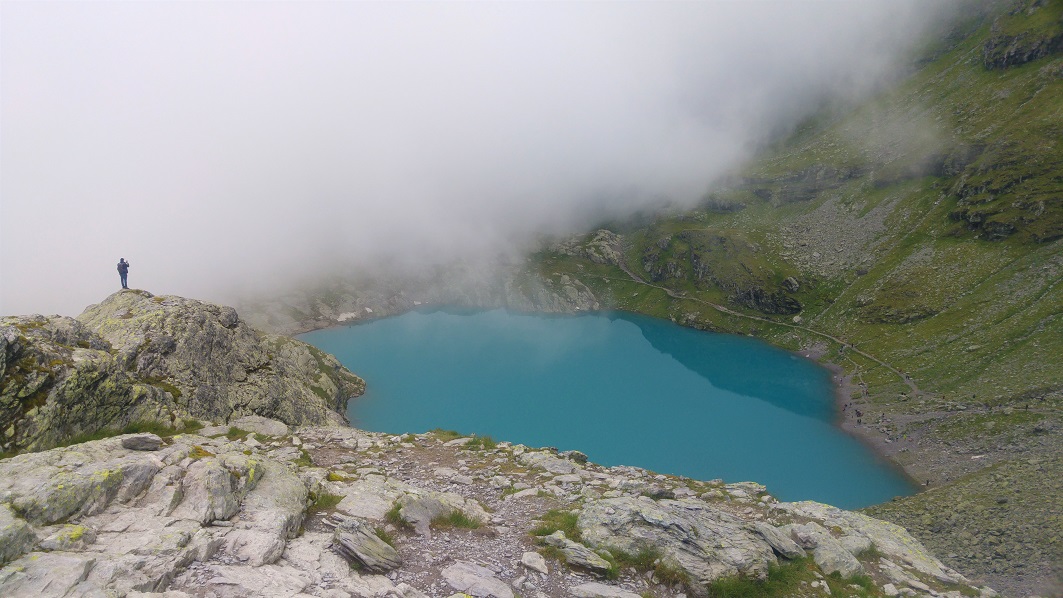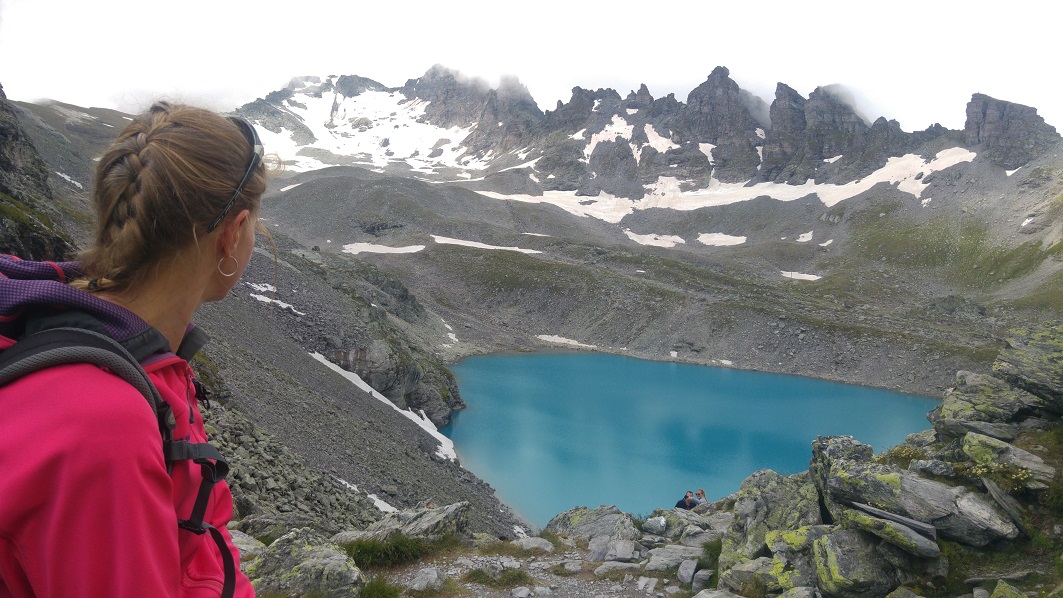 Kiveä vasten värit korostuvat tai ehkä hapenpuutteen vuoksi korkealla vain vaikutun kaikesta enemmän. Mutta värit ovat kirkkaammat ylhäällä. Viiden järven vaelluksella Pizolissa haluaisin jäädä toiselle järvelle, Wildseelle 2495 metrin korkeuteen hengailemaan. Seinämät vain ovat jyrkät, taukopaikat kivikkoa ja väkeä niin, etten tiedä onko kiviä vai ihmisiä enemmän.