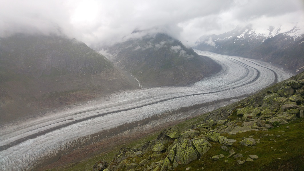 Olen käynyt Alppien suurimmalla jäätiköllä Aletschilla useasti, tarkemmin sanottuna kulkenut sen sivustaa. Parinkymmenen vuoden aikana jäämassa on kutistunut niin paljon, että rantu näkyy sekä vuoren kyljessä ja pituudessa. Ennen sitä riitti pitkälle kaukaisuuksiin, nyt häntä on patikkareitiltä nähtävissä.