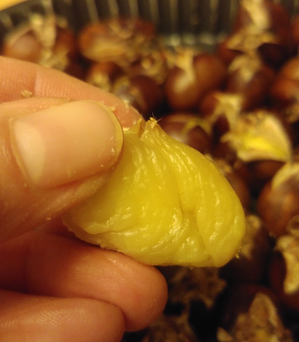 Pari päivää pohdin murun kohtaloa. En saanut kastanjoita kuorista kokonaisina niiden viilennyttyä.