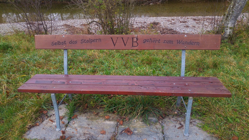 Penkin viesti: kompurointi on osa patikointia. /The message of this bench: even stumbling is part of hiking.