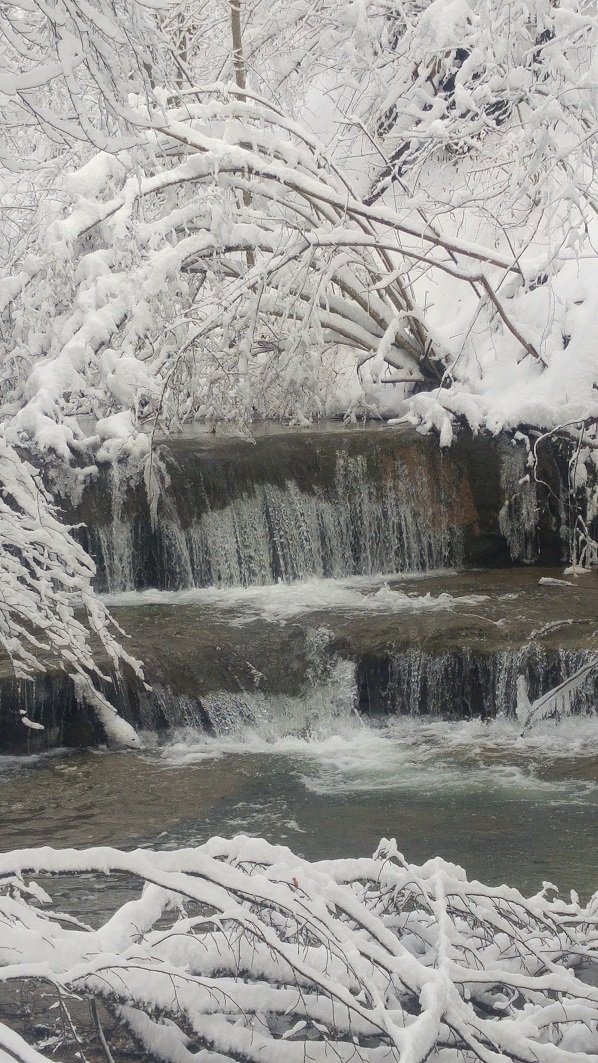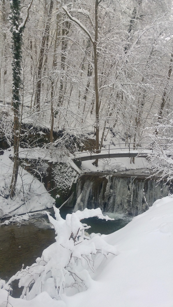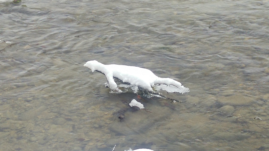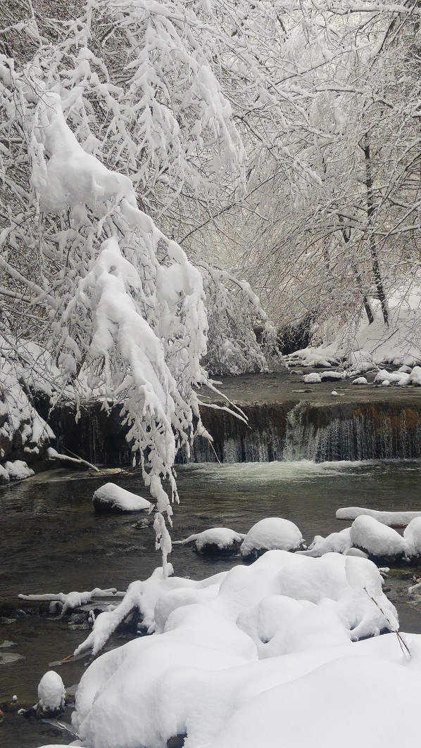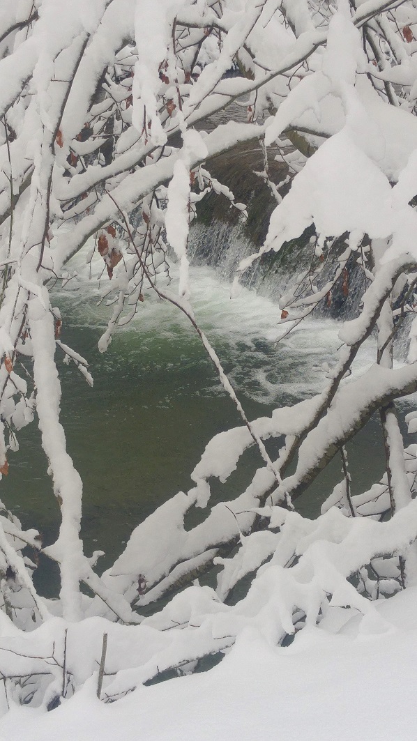 Metsässä puut kaartuvat raskaina painavasta lastista. Joki höyryää, siellä täällä putoukset ovat toinen toistaan upeampia teoksia, näistä voisi nopeasti maalata akvarellin todistamaan talvea. Kauneimpia ovat ohuet oksat, joiden päällä saattaa olla kymmenen sentin korkuinen, parin sentin levyinen lumiseinä. En ymmärrä miten se kestää kasassa, mutta hento puu näyttää lehdeltä ruotineen.