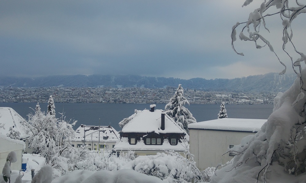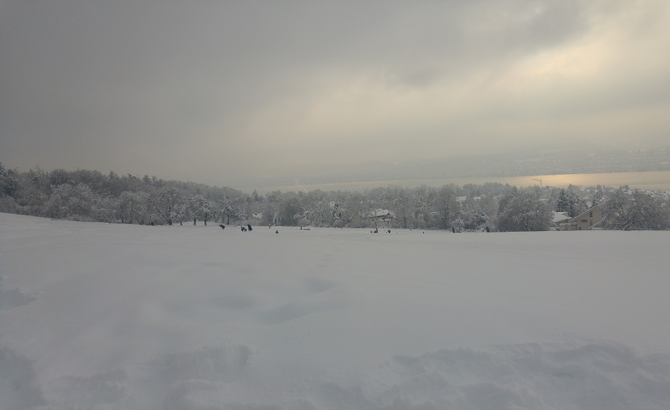Kyllä se kankkusissa tuntuu, kun tarpoo pitkästä aikaa puoleen sääreen syvässä hangessa. Edellisestä kunnon lumilastista Zürichissä on niin paljon aikaa, että hädin tuskin muistan miltä se tuntui.
