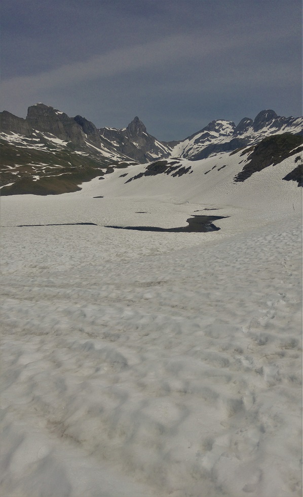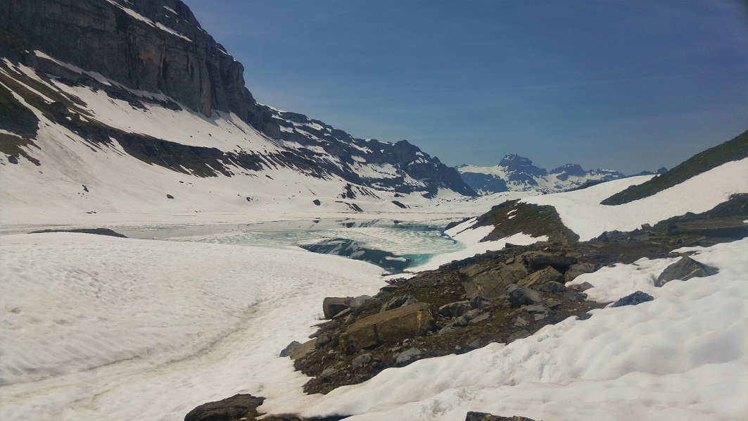 Glattalpia sanotaan epävirallisesti Sveitsin kylmimmäksi paikaksi, täällä on mitattu ennätyslukemia, 52.2 astetta pakkasta. Ehkä siinä syy tai sitten tavallista lumisemmassa talvessa, mutta kesäkausi ei vielä ole kyllä saapunut.