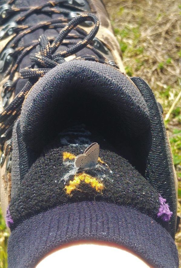 Saharan pöly oli värittänyt lumen kellertäväksi, paikoittain oli punertavaa hiekkaakin. Perhoset näillä main, suht vilakoissa olosuhteissa, olivat tavallista vantterampia ja lentelivät tehokkaasti sinne tänne. Se, joka pysähtyi sukalleni lepäilemään, oli höyhensarjaa. Ehkä siksi voipunut.