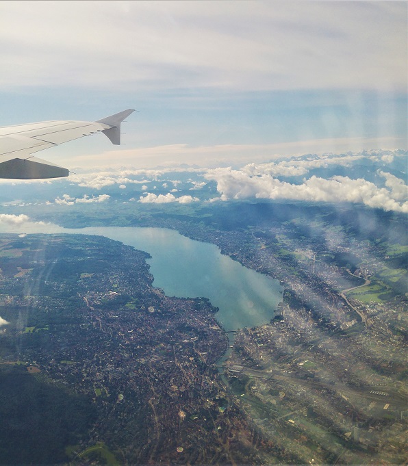 Siinä vaiheessa, kun en vieläkään voinut uskoa istuvani lentokoneessa, näin Zürichin ja kotitalon ilmasta käsin. (Kyllä se siellä pilkottaa, siristä, siristä!)