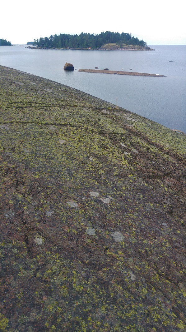 Aamu kallioilla on rauhaisa. Liikkeellä on pari lokkia, joutsen, kaksi kalastajaa ja me. Täällä on pysyvyyttä ja turvallisuutta, jota maailmasta puuttuu juuri nyt. Mieleeni tuli jäädä makaamaan vatsalleen kalliolle, pää tietenkin mäessä ylöspäin, ja ladata itseni täyteen maaäidin energiaa. Olisin saattanut valua mereen. Nämä tuppaavat olemaan liukkaita.