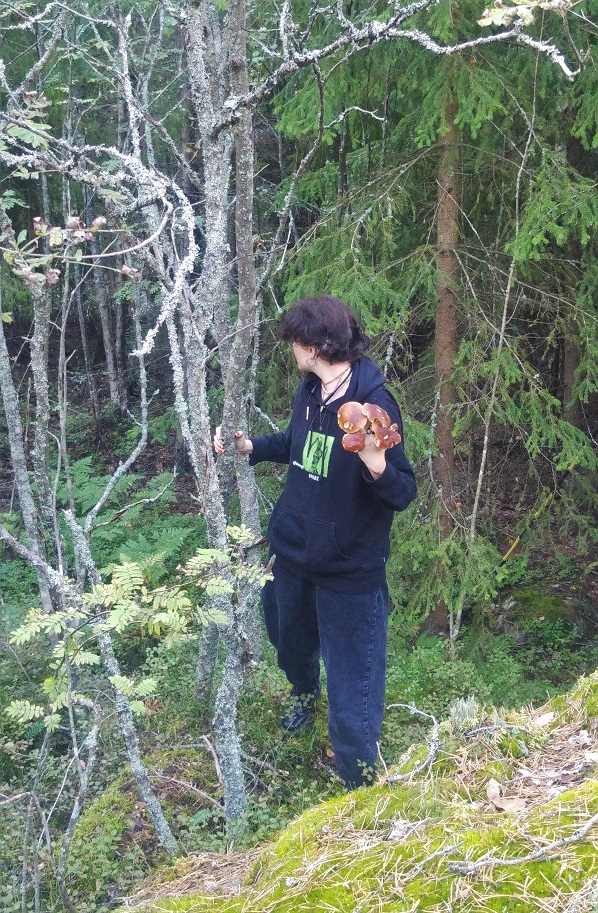 Sveitsissä olen luuhannut metsissä ja niiden lähettyvillä löytämättä ainuttakaan syötävää sientä, vaikka tattipaikkojakin on – kuuleman mukaan. Kotkassa kävelylenkillä ei tarvinnut kuin luoda silmäys tien sivuun ja siinä ne olivat. Tatti vei toisen luo, parin harppauksen päähän kolmannen viereen. Tytär katosi jonnekin ja ilmestyi tovin kuluttua puiden alta, kiveltä kivelle harppaillen kuin metsänhenki kädet täynnä iltapalaa.