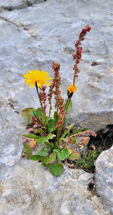 Maasto oli murenevaa, joka mutkan takana uudenlaista. Välillä Grand Canyon -tyyppistä, toisinaan selvää Alppia niittyinen, sitten valkeahkoa outoa kivikkoa.