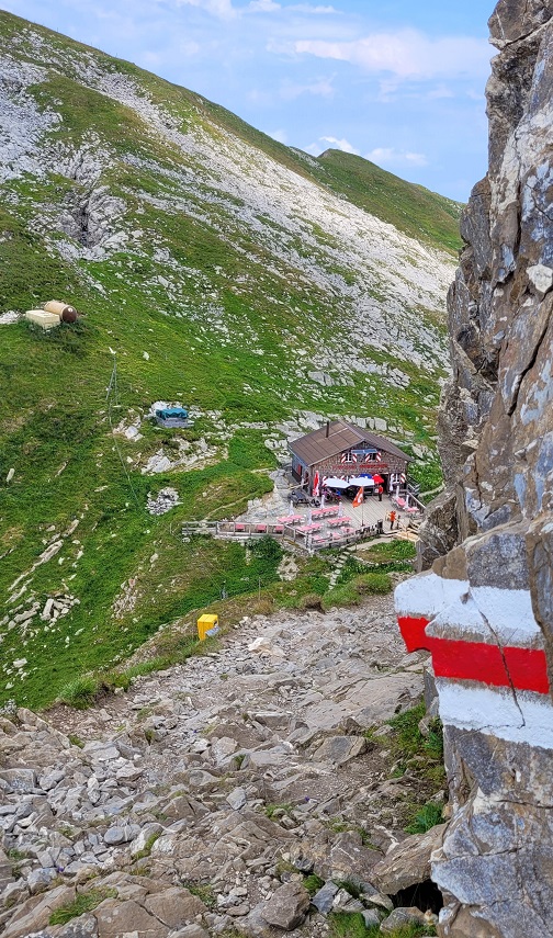 Sapuskapaikka Berghaus Männdlenen (2344 m) poterossa.
