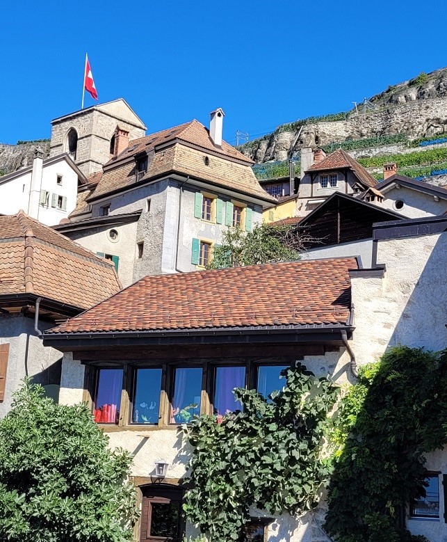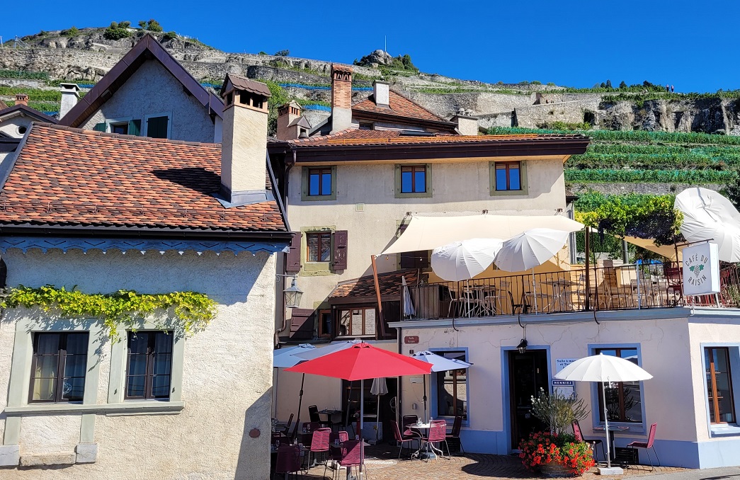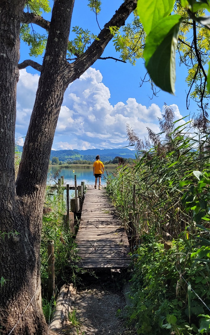 Vedin sadetakin hupun päähän, sen päälle kypärän ja pyyhin vettä satulalta. Ajeltiin ohi luostarin, sekö talon, jonne täkäläinen psykoanalyytikko C.G.Jung purjehti järven toisesta päästä ollakseen rauhassa. Rauhassa oltiin mekin; rankkasade oli hyydyttänyt vähäisenkin osanoton. Tie oli autoilta suljettu ja ne muutamat pyöräilijät istuskelivat juoma- tai ruokatauolla katosten alla odottelemassa sateen laantumista.