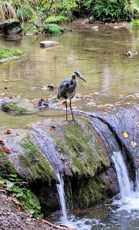 Kalastajat olivat kesän kuivuuden jälkeen saapuneet metsän jokivarteen. Harmaahaikara tuijotti meitä hetken, palasi sitten omiin toimiinsa eli tarkkailemaan vedenalaista liikehdintää tuoreen snäkin toivossa.