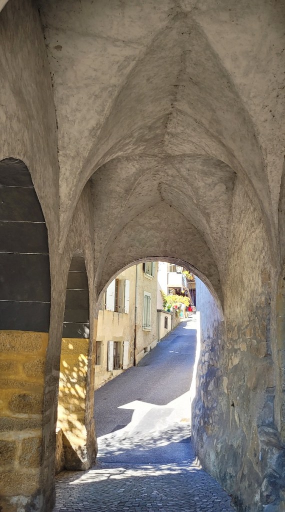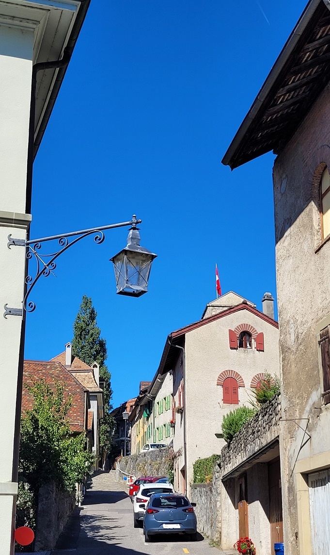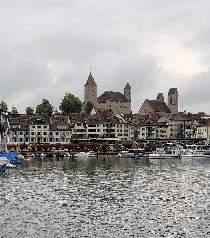 Ajeltiin melko yksin ja vauhdilla eteenpäin, suunnitelmien mukaan ainakin siihen asti, kunnes sade estäisi näkyvyyden. Stoppi tuli yllättäin 7 km ensimmäistä etappia eli Rapperswilin linnakaupunkia.