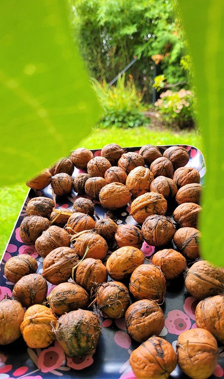 Sieniä näkyi siellä täällä ja saksanpähkinät värittivät polkua, rusahtelivat kengän alla. Joku kyläläinen oli tullut jumppakassin kera pähkinään ja lattoi juuri valtaisaa saalistaan jemmaan, jatkaakseen seuraavan pussin täyttämistä. Tungin taskuun niin paljon kuin mahtui ja juostessa se tuntui heiluvalta vesimelonilta taskussa. Ei varsinaisesti helpottanut askellusta.