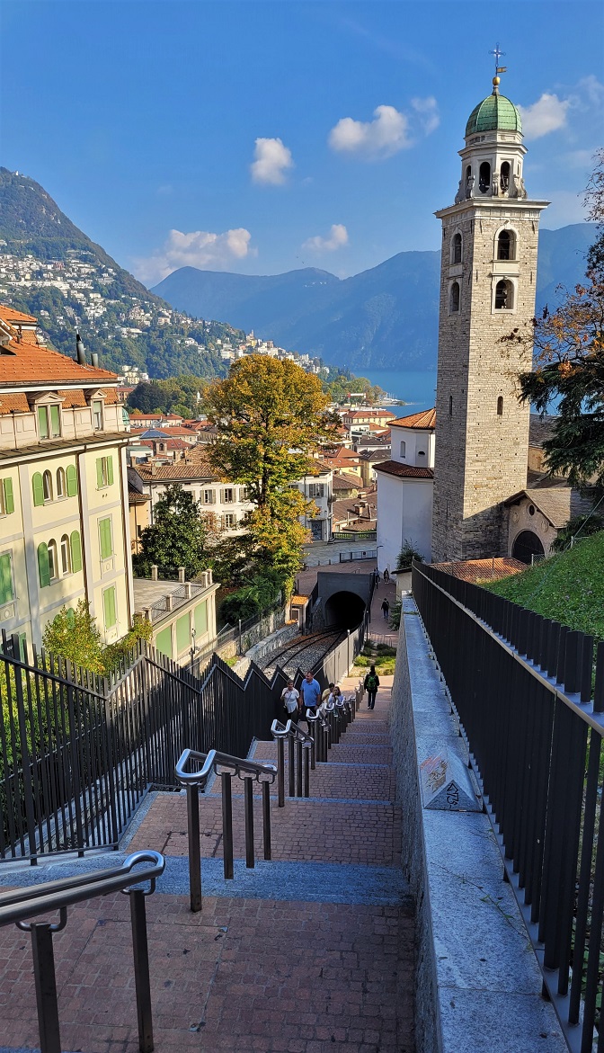 Lugano has a real downtown. If you don´t want to walk the stairs, there´s a funicular.