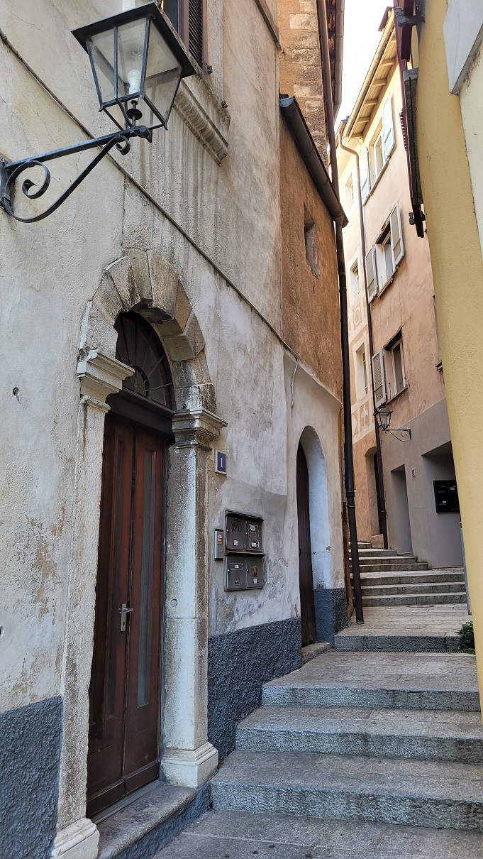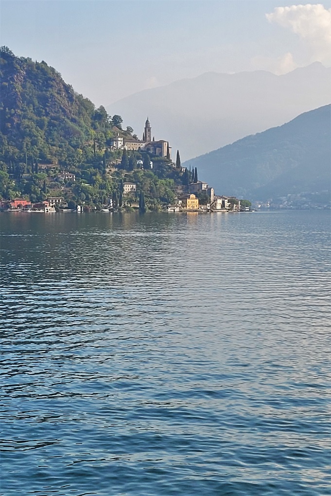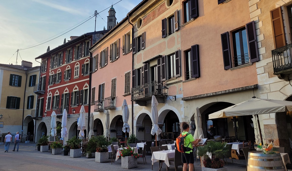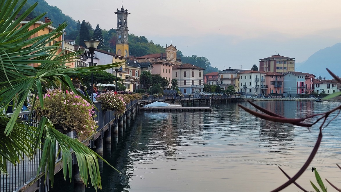 Morcoteen laskeuduttiin sen maamerkin, Santa Maria del Sasson yläpuolelta, kirkon, jonka näimme jo Italian puolelta. Itse kylä on pikkuruinen, mutta viehkeä kapeine kujineen ja palmuineen.