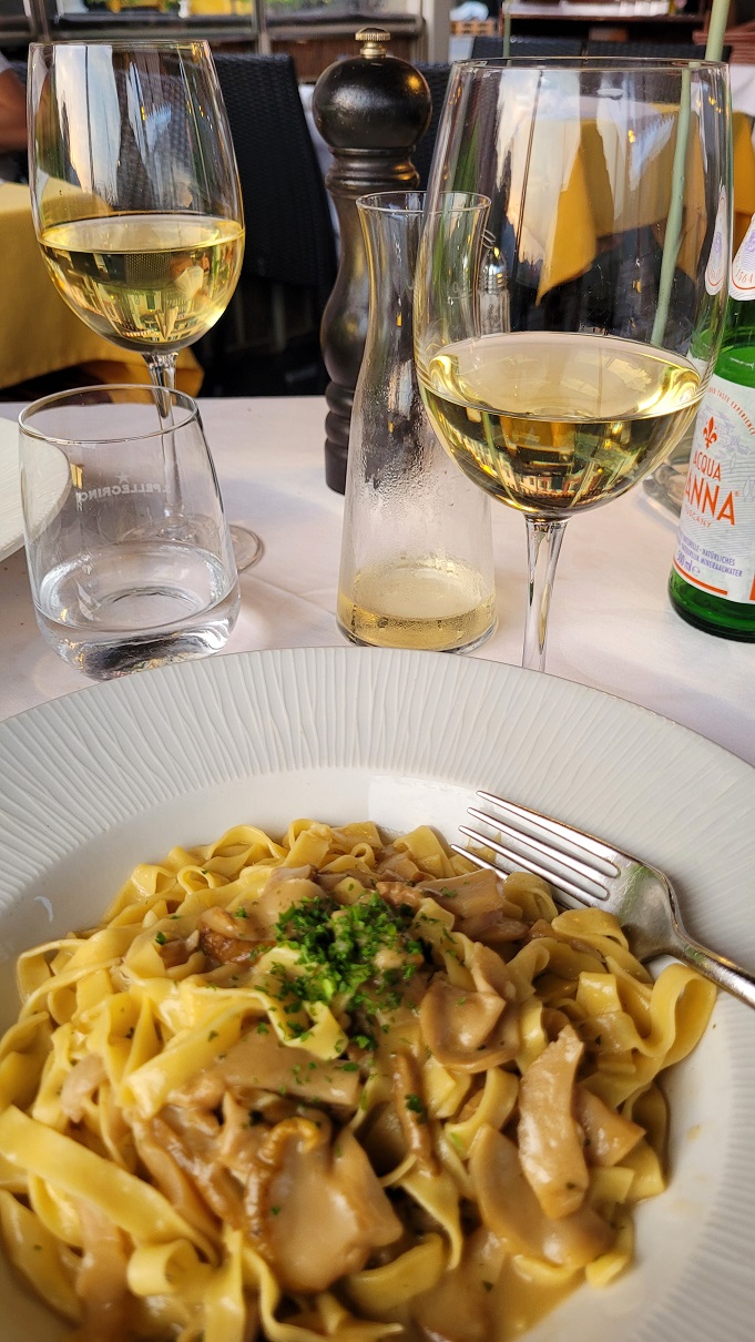 Oli sen verran ilta, että päätettiin jäädä rantaravintolaan iltaruualle. Takaisin Luganoon pääsee päiväsaikaan myös laivalla, myöhemmin postibussilla. Tattipastan jälkeen noustiin bussiin, joka kiemurteli pimeää rantatietä takaisin Luganoon.