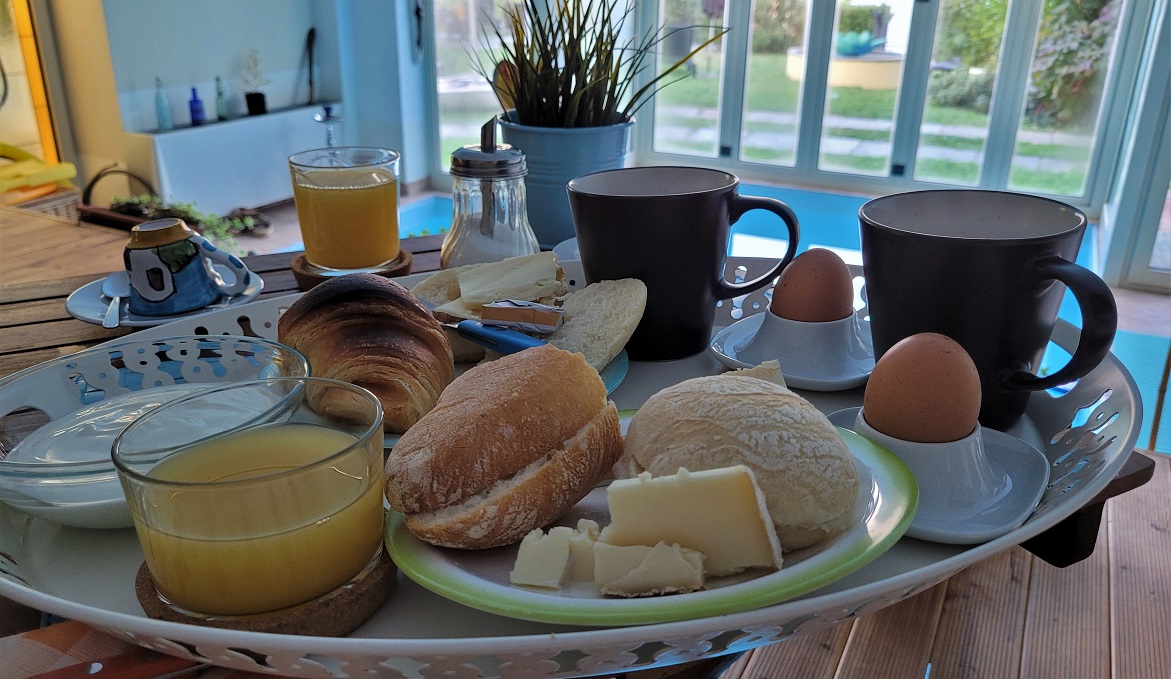 Käytiin heittämässä kamat B&B:n ja ihasteltiin parvekkeelta järvinäkymää, palmuja. Talo oli täynnä kitschiä, kaikenlaista rantaroinaa. Herttainen, mutta kummallinen oli myös aamiaispyötien sijoituspaikka, ne olivat keittiön viereisessä huoneessa pienen uima-altaan äärellä. Suihku peränurkassa oli kaiketi looginen, ottaen huomioon uintimahdollisuuden. Lainaksi olisi ollut kajakkeja, suppilautoja ja muita, sillä pihan poikki pääsee kätevästi järvelle.