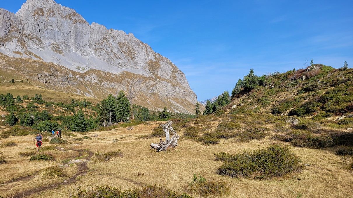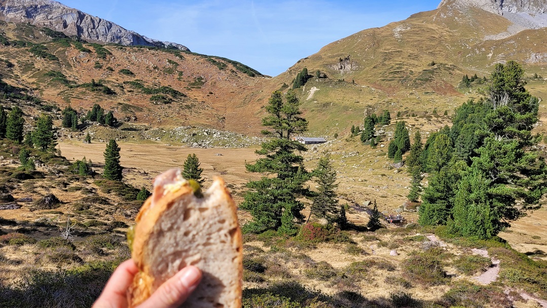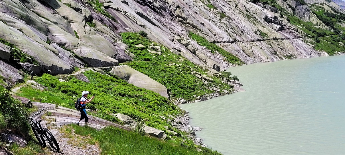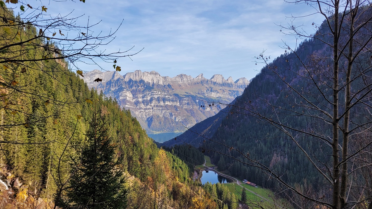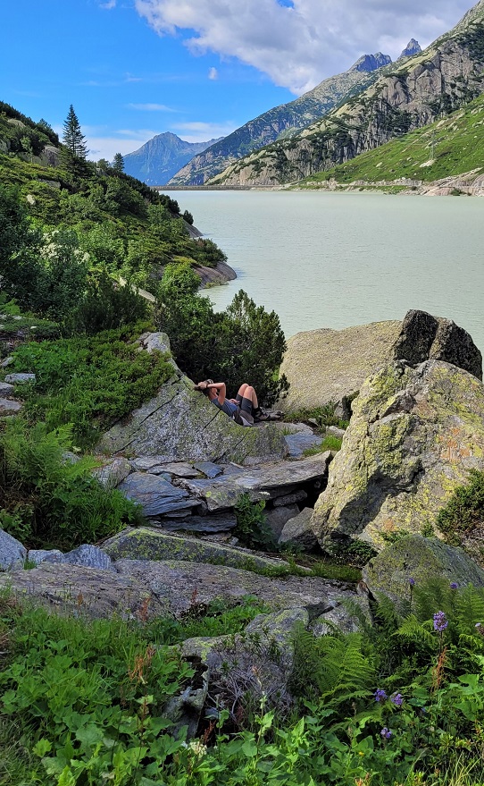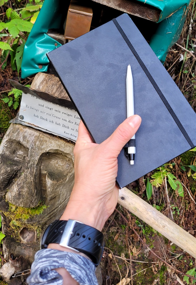Ylhäällä vuorella istahdettiin hetkeksi tutkimaan paluureittiä. Puhelimen kartta ehdotti isompia teitä ja Zürichinjärven puolelta koukkausta, Aldo oli Greifenseen ja metsäpolkujen kannalla. Mentiin aluksi kartan neuvojen mukaan, sitten Aldon, tultiin kahdesti samalle metsämökille ja minä olin jääpuikkona.