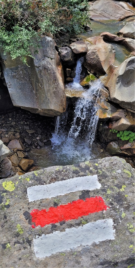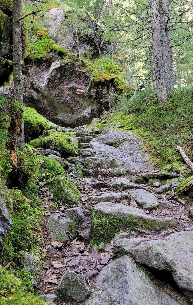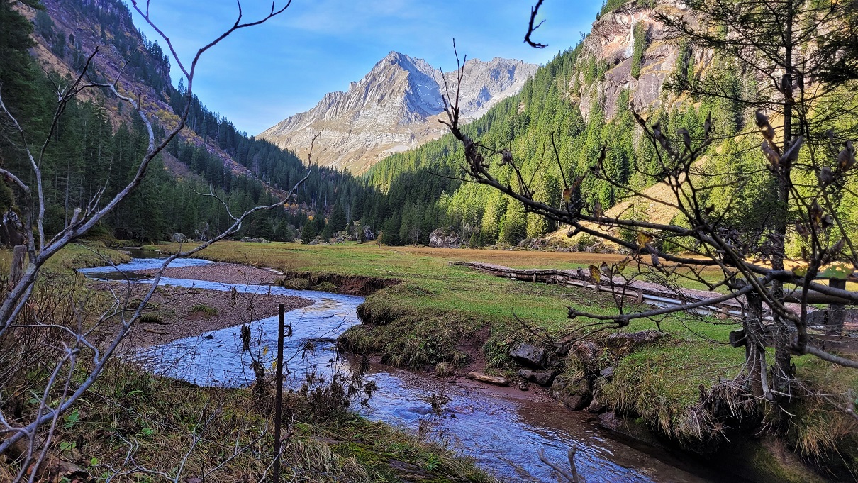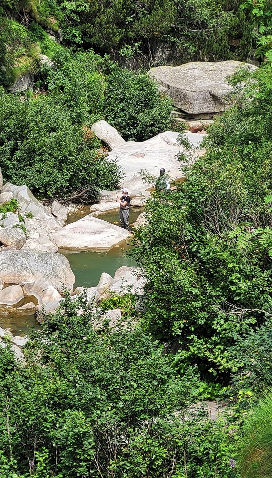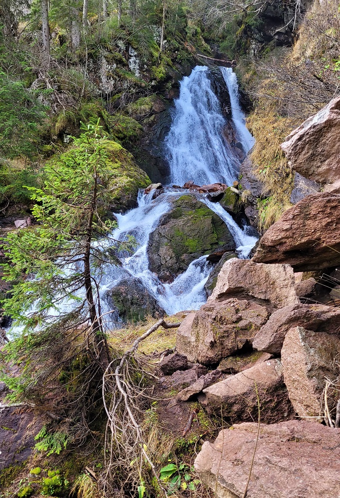 Aurinko kultasi lehdet ja joessa pärskyi vesi. Zoomailin putousta, kun vierestä pörähti pyörä alamäkeä vauhdilla ja kuulin sveitsiläisen “Hoi!”, joka ehkä sittenkin oli “Moi!”. Selästä päätellen kuka tahansa maastopyöräilijä mustissa vaatteissaan, mutta ehkä Satu; lähimetsän todennäköisin suomalainen.