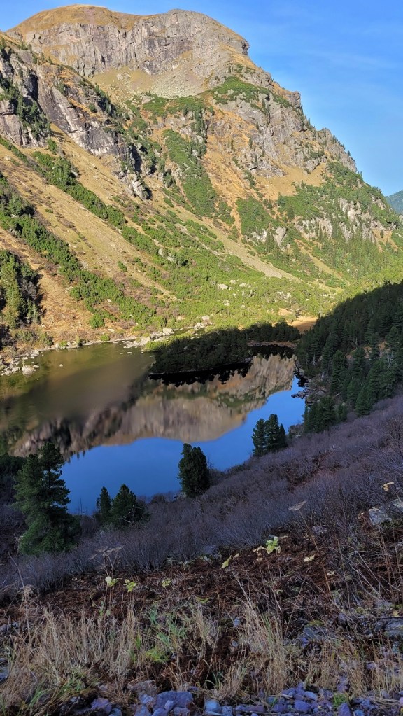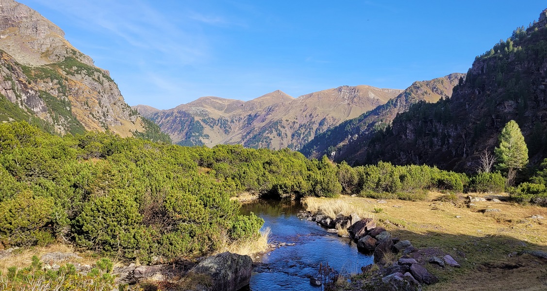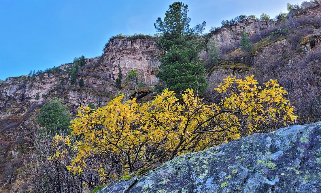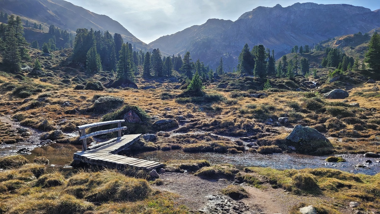 Aurinko kultasi lehdet ja joessa pärskyi vesi. Zoomailin putousta, kun vierestä pörähti pyörä alamäkeä vauhdilla ja kuulin sveitsiläisen “Hoi!”, joka ehkä sittenkin oli “Moi!”. Selästä päätellen kuka tahansa maastopyöräilijä mustissa vaatteissaan, mutta ehkä Satu; lähimetsän todennäköisin suomalainen.