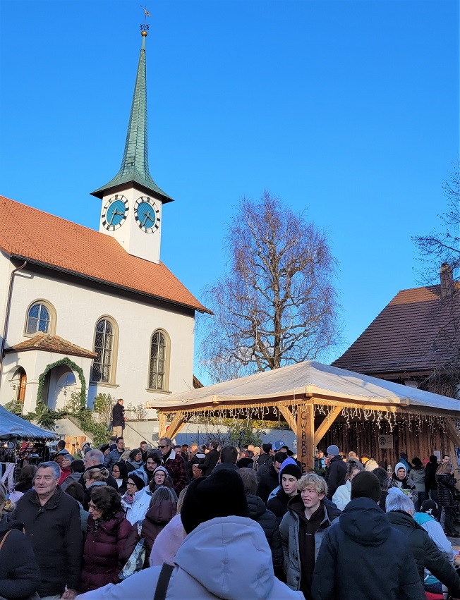Ensi viikonloppuna on oman kylän Wienachtsmärt. Ja koska ollaan kultarannikolla, Glühweinin lisäksi on tietty sampanjaa. Vain kaviaari puuttuu. Palanpainikkeeksi myydään perinteisesti – samasta sampanjakojusta- kuumia täytettyjä lettuja.