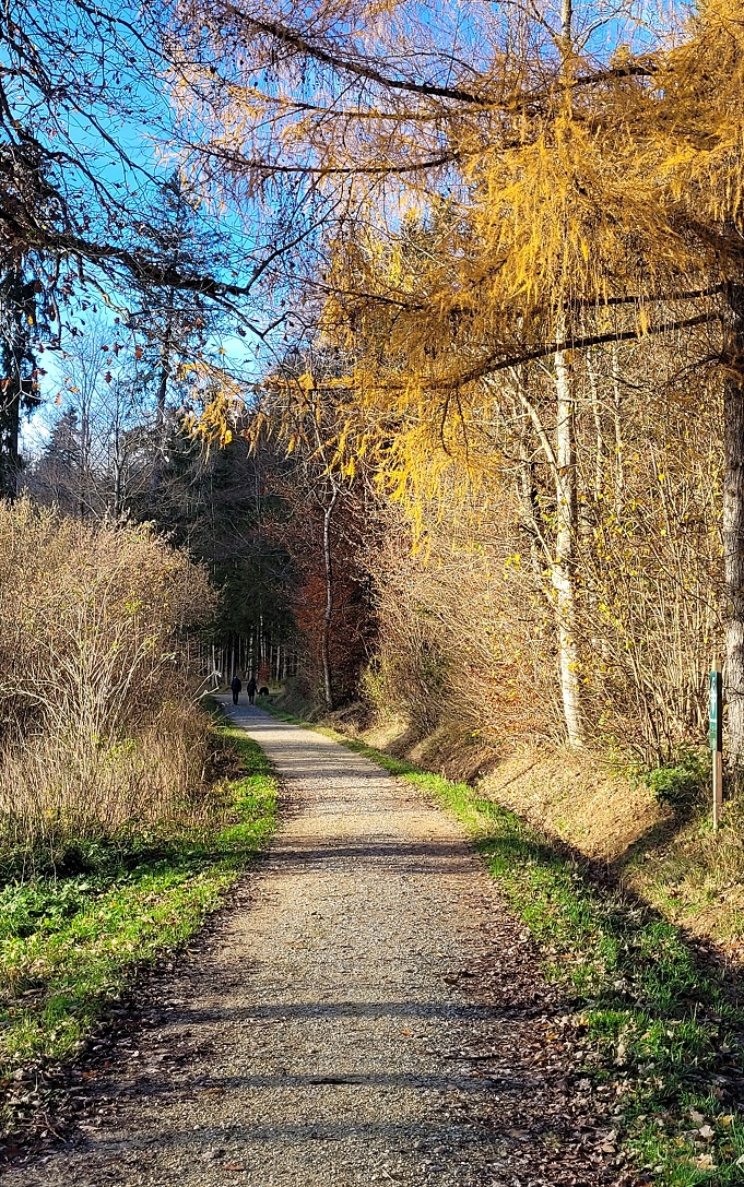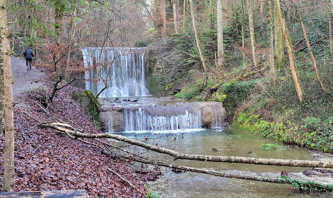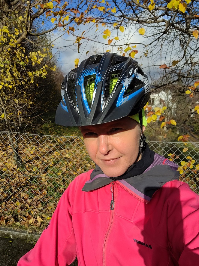 Aurinko kultasi lehdet ja joessa pärskyi vesi. Zoomailin putousta, kun vierestä pörähti pyörä alamäkeä vauhdilla ja kuulin sveitsiläisen “Hoi!”, joka ehkä sittenkin oli “Moi!”. Selästä päätellen kuka tahansa maastopyöräilijä mustissa vaatteissaan, mutta ehkä Satu; lähimetsän todennäköisin suomalainen.