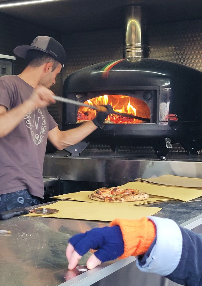 Kylän aukion vierustalla uudehkossa pizzeriassa myydään ylikalliita pizzoja, myös kullan kera jos niin haluaa (noin 400 fr kipale). Foodtruck-pisteessä paistettiin tänään vähän pienempiä ja siksi edullisempia peruspizzoja. Ihan ok, mutta yhä ollaan sitä mieltä, että hinnat on todella yläkantissa.