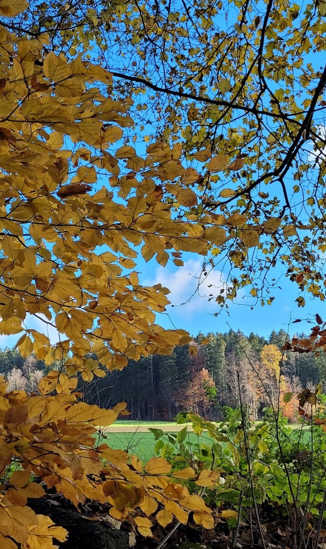 Ylhäällä vuorella istahdettiin hetkeksi tutkimaan paluureittiä. Puhelimen kartta ehdotti isompia teitä ja Zürichinjärven puolelta koukkausta, Aldo oli Greifenseen ja metsäpolkujen kannalla. Mentiin aluksi kartan neuvojen mukaan, sitten Aldon, tultiin kahdesti samalle metsämökille ja minä olin jääpuikkona.