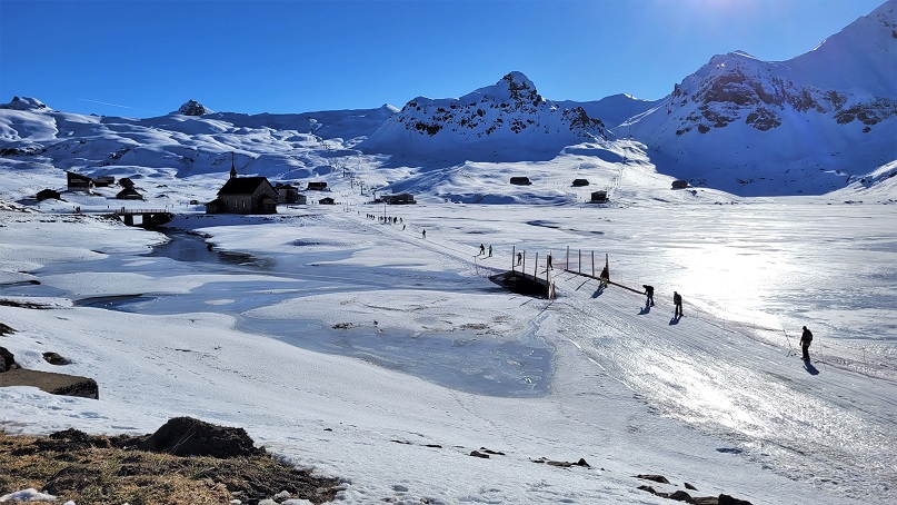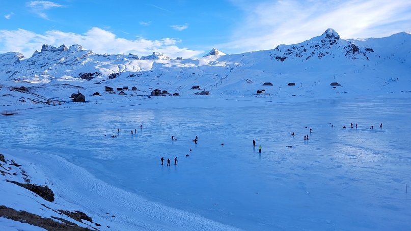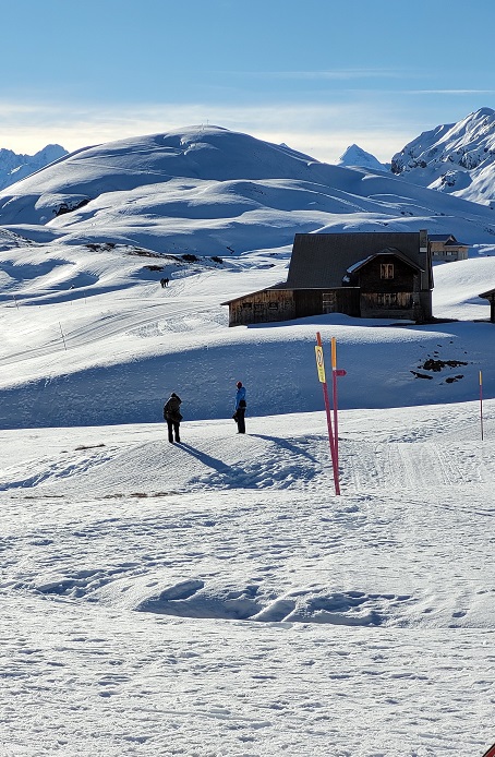 Stöckalpin hissi lipui vihreiden rinteiden yllä; keskellä mutkitteli valkoinen luiru, jota myös laskettelumäeksi kutsutaan. Se oli kuitenkin vain surkea jäänne jostain menneiden aikojen vauhdin hurmasta.