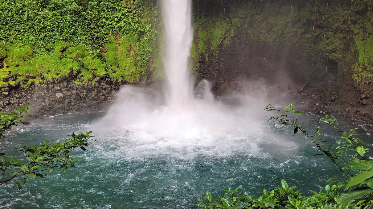 Käytiin vielä Fortunan putouksella, joka on lähellä, mutta 400 askelmaa alaspäin. Oli todella kosteaa ja lämmintä ja ohjeissa kehotettiin raskaana olevia sekä astmaatikkoja välttämään putousta. Luonnostani kovakorvaisena en piitannut neuvoista (Alpitkin on noustu, joten miten 400 rappusta voisi olla ongelma). Tykkään enemmän putouksista, missä on vähemmän infrastruktuuria ja porukkaa, mutta haluttiin virkistää Hiljan muistoja, jotka olivat haalistuneet ajan kanssa. Putouksellekaan ei päässyt maksutta, kuten ei juuri minnekään, mutta täältä saatavat varat sentään käytetään Fortunan kaupungin asukkaiden hyväksi.