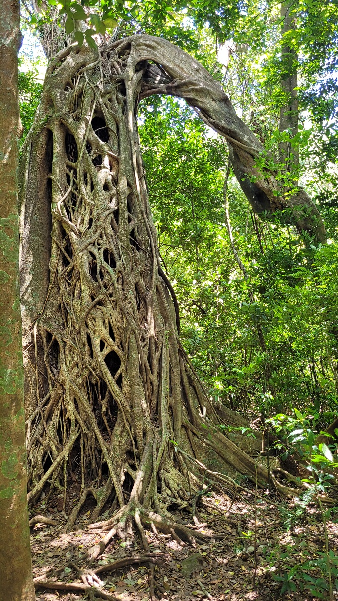 Polku putouksille kulki läpi metsän ja rutikuivan, polttavan pusikkoalueen. Yritin virittää kuuloaistini ja havainnointikykyni 150 prosenttiselle herkkyydelle, jotta huomaisin lähestyvän kalkkarokäärmeen tai keihäskäärmeen, joita molempia kammoksun. Jälkimmäinen on vielä niitä, jotka saattavat lähteä ihmisen perään. Retken ainut käärme katosi sujahtaen pusikkoon, eikä ehditty saada selvää mikä laji oli kyseessä. Muut kohtaamiset olivat vähemmän verenpainetta nostattavia, puissa riekkui kapusiiniapinoita, jotka tulivat laumana meitä ihmettelemään ja niityllä loikki täysin antiklimaattisesti ihan tavallinen kauris.