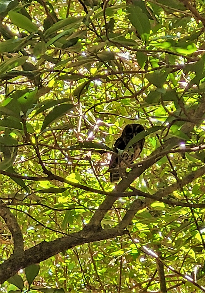 Polkua ei varmaankaan ollut tallannut aikapäiviin kukaan ja epäilin, ettei suurkaupunkilainen olisi välttämättä löytänyt enää tietä takaisin, niin hyvin reitti oli peittynyt kasvustoon. Catarata del Jaguar, jaguarin putous, oli pieni ja nätti, sinne pulahdettiin viilentymään paluumatkalla. Kuumalle lähteelle oli tallattava jokunen lisäkilometri ohi apinavyöhykkeen, oksalla istuvan pöllön ja jokien poikki. Niukasti purpattava sinertävävetinen höyryävä allas haisi todella luotaantyöntävälle, enkä todellakaan upottanut sinne edes sormea.